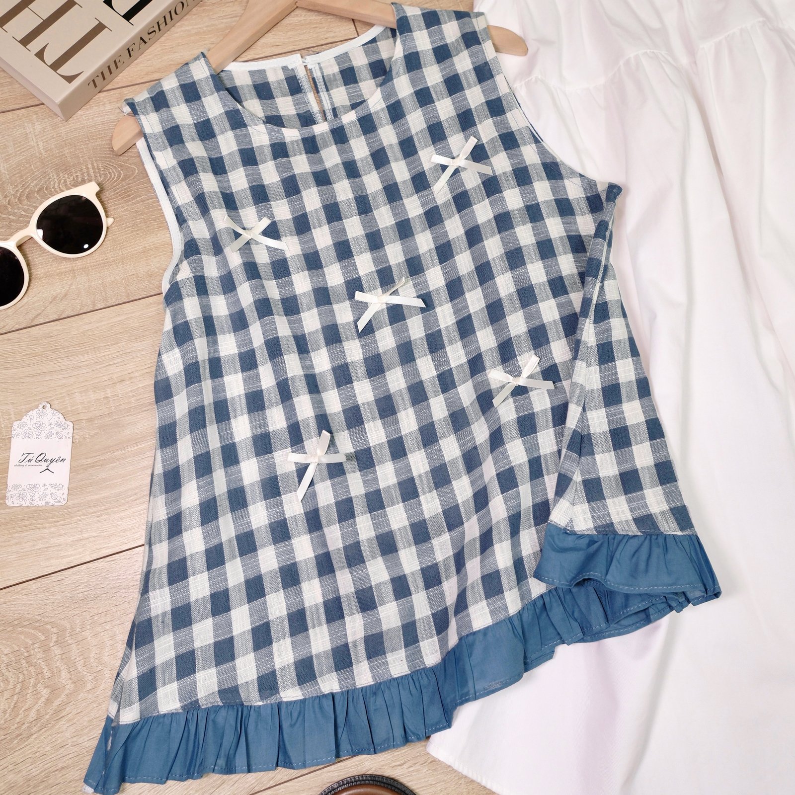 • Áo kiểu caro cổ tròn sát nách có thể dễ dàng phối hợp với nhiều loại trang phục khác nhau như quần short, chân váy, quần jeans,…