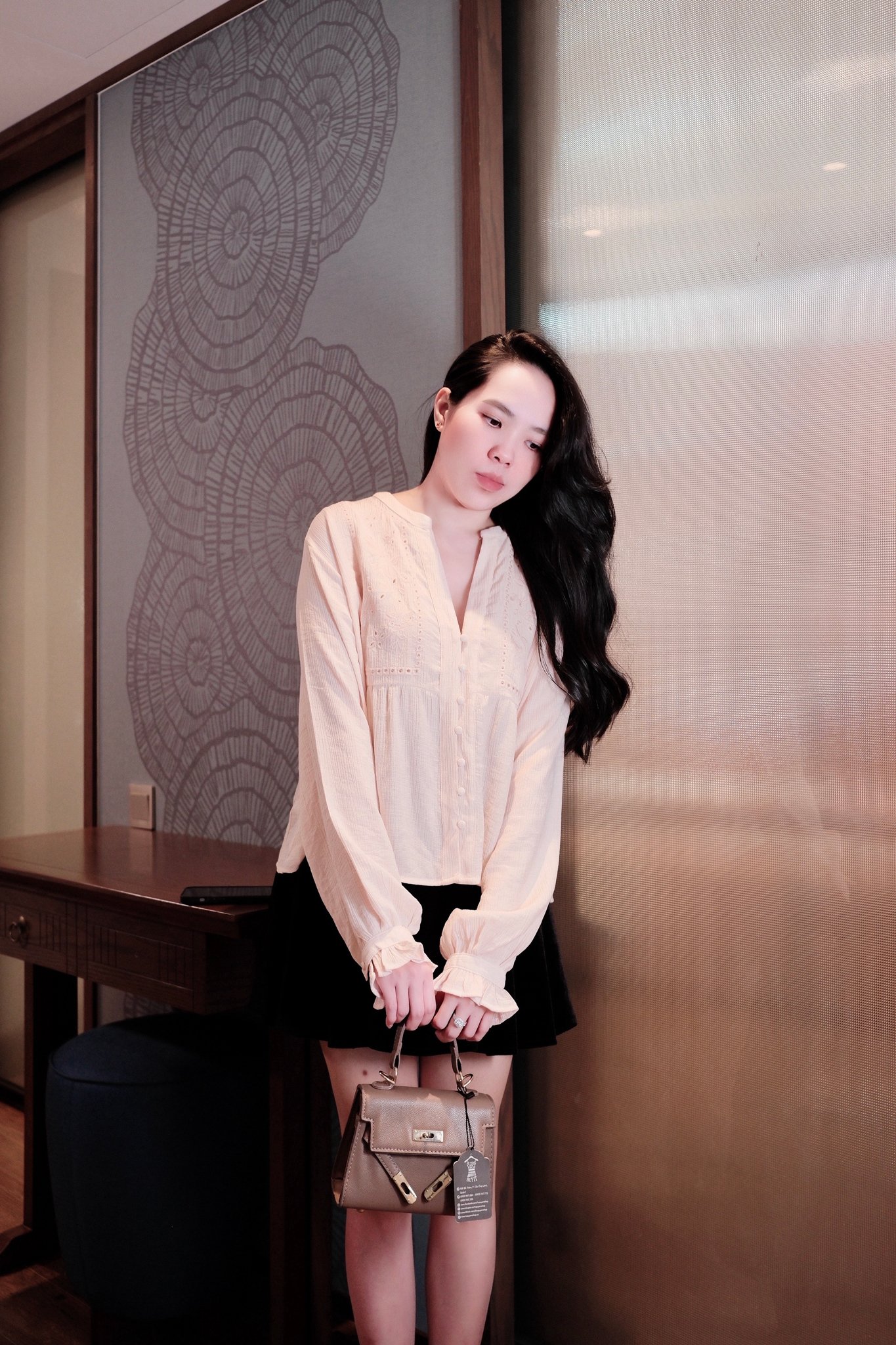 - Hoàn thiện set đồ bằng giày cao gót hoặc giày bệt mũi nhọn để giữ vẻ thanh lịch.