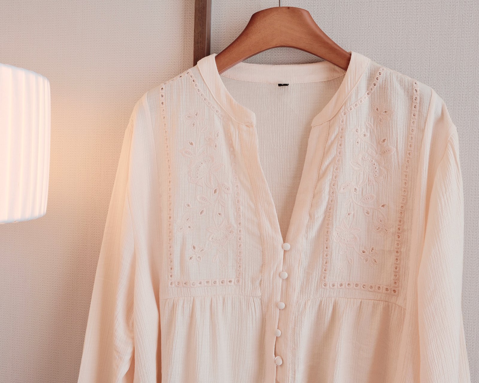 - Phơi trong bóng râm, tránh ánh nắng trực tiếp để bảo vệ họa tiết thêu.