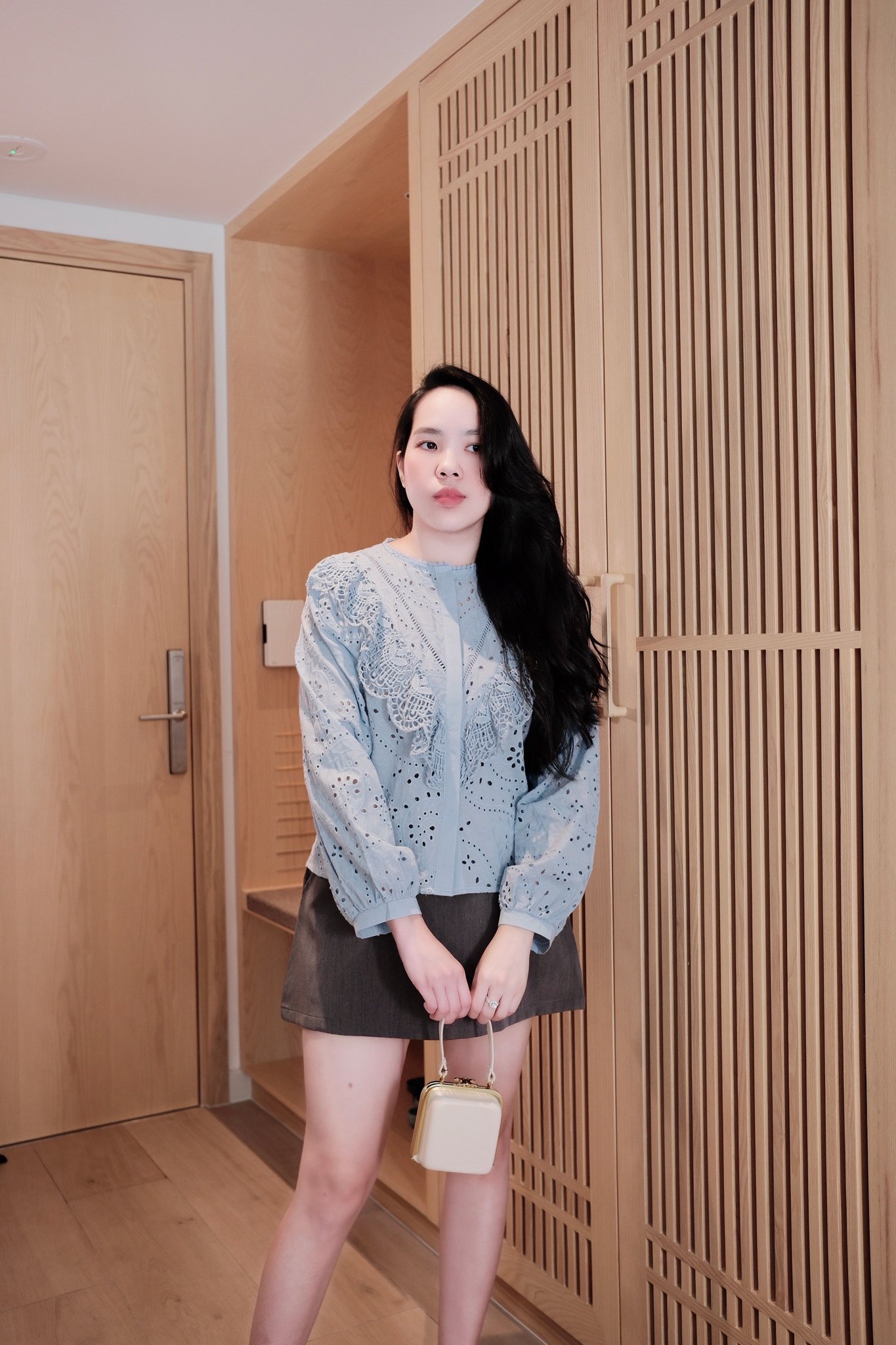 - Hẹn hò/Sự kiện nhẹ: Mix áo với chân váy midi xòe hoặc chân váy xếp ly, thêm một chiếc túi xách nhỏ xinh và giày cao gót để tạo nên vẻ đẹp lãng mạn, ngọt ngào và thu hút.