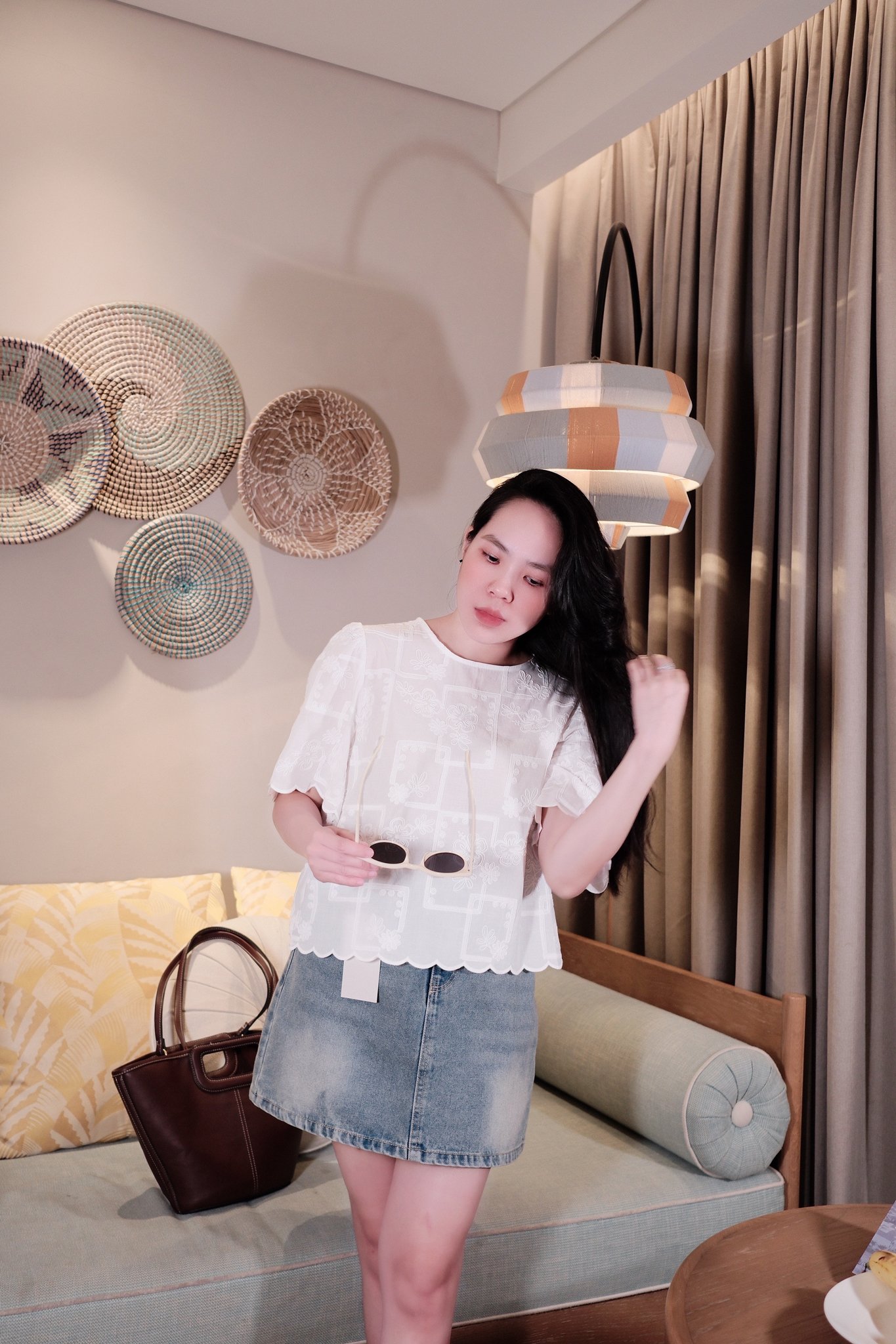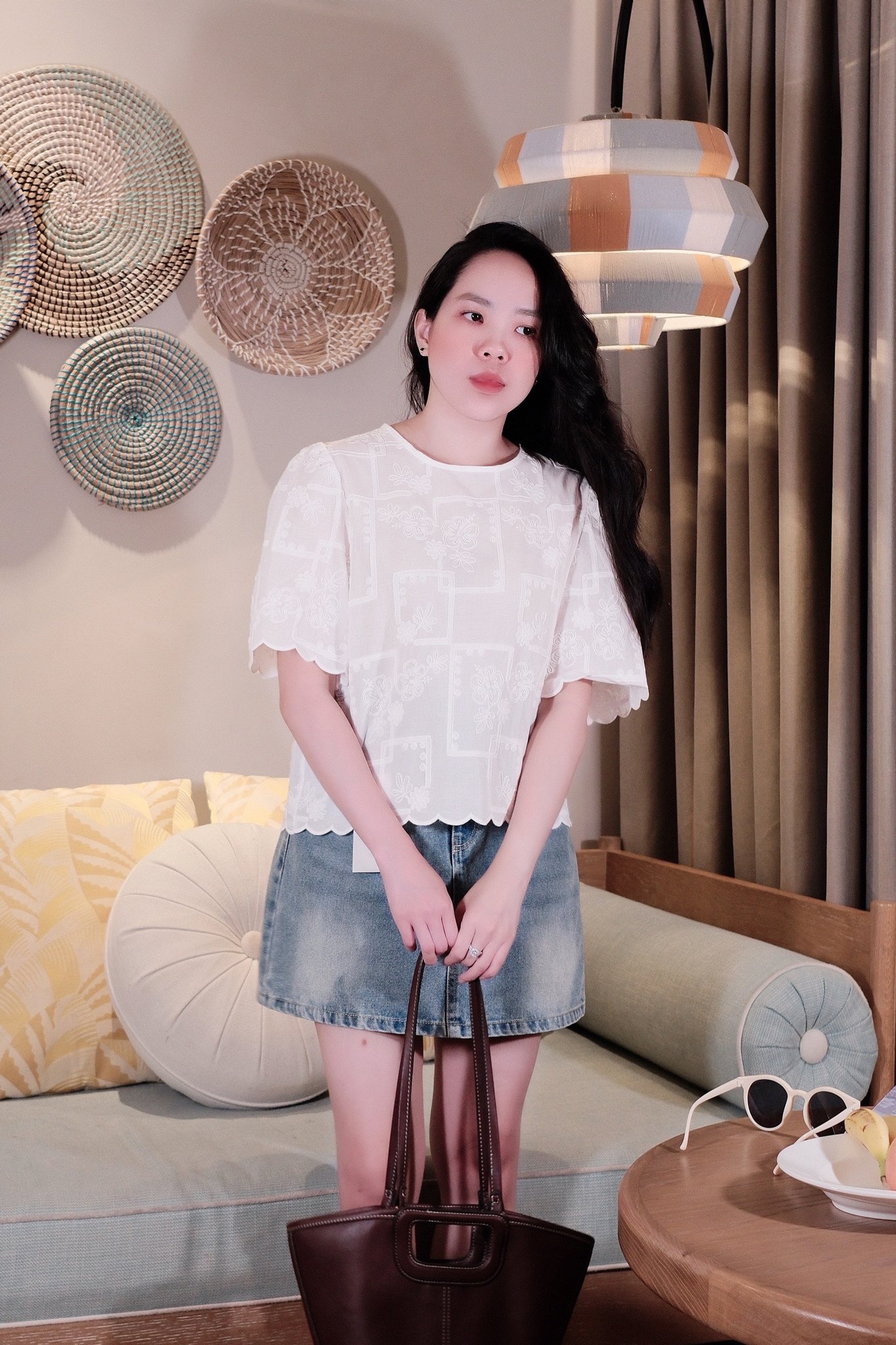 - Hoàn thiện set đồ bằng các phụ kiện như túi xách nhỏ, kính râm, hoặc khuyên tai để tăng thêm điểm nhấn cá nhân.