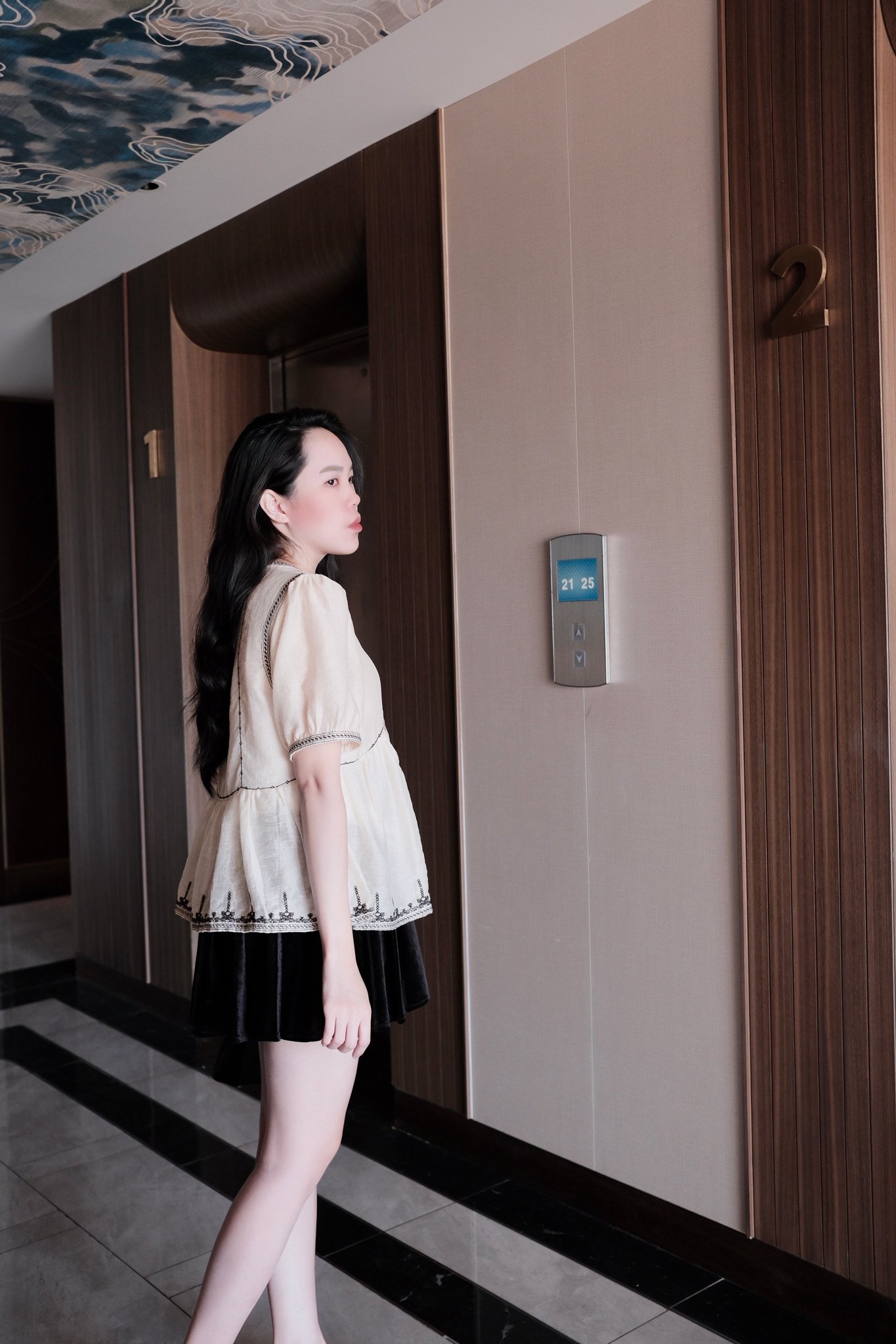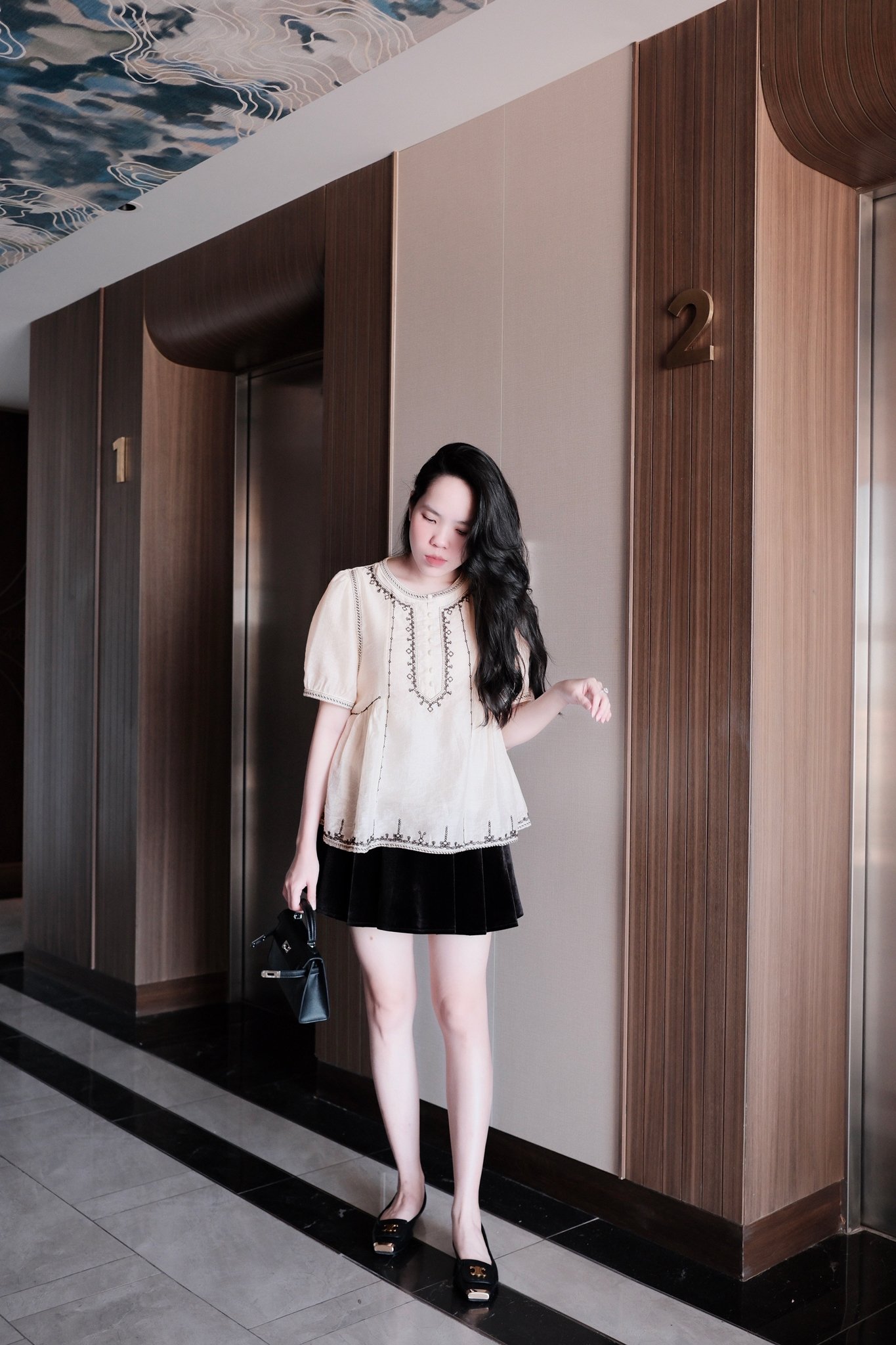 • Phối cùng Chân Váy: Kết hợp áo với chân váy chữ A, chân váy xòe hoặc chân váy xếp ly để tạo nên vẻ ngoài nữ tính, dịu dàng. Đặc biệt, phối cùng chân váy nhung hoặc vải dày dặn sẽ tạo nên sự tương phản chất liệu thú vị, tăng thêm vẻ sang trọng.