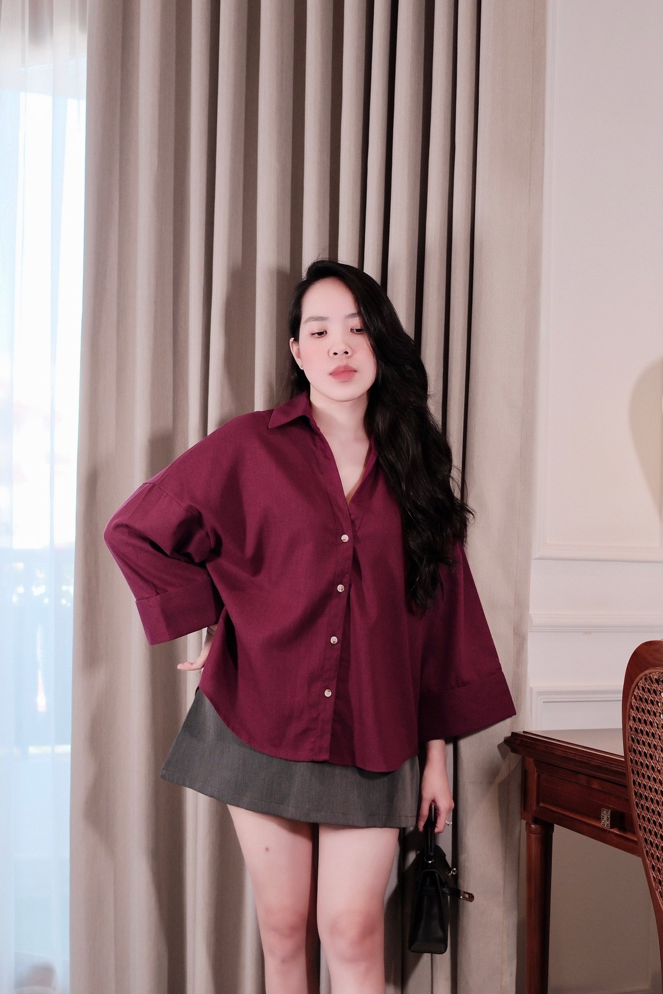 Áo Sơ Mi Nữ Dáng Rộng Tay Lỡ là biểu tượng của sự linh hoạt trong thời trang. Bạn có thể biến hóa phong cách không giới hạn với chiếc áo này: