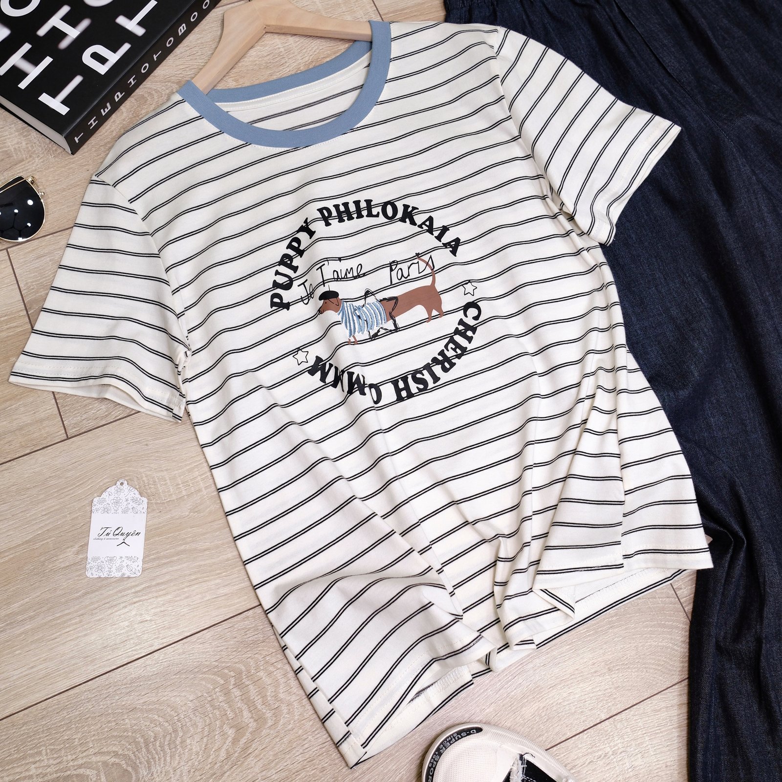 Áo Thun Sọc Cổ Tròn In Hình Thú & Chữ Tay Ngắn – Nét Đáng Yêu Cho Phong Cách Hàng Ngày