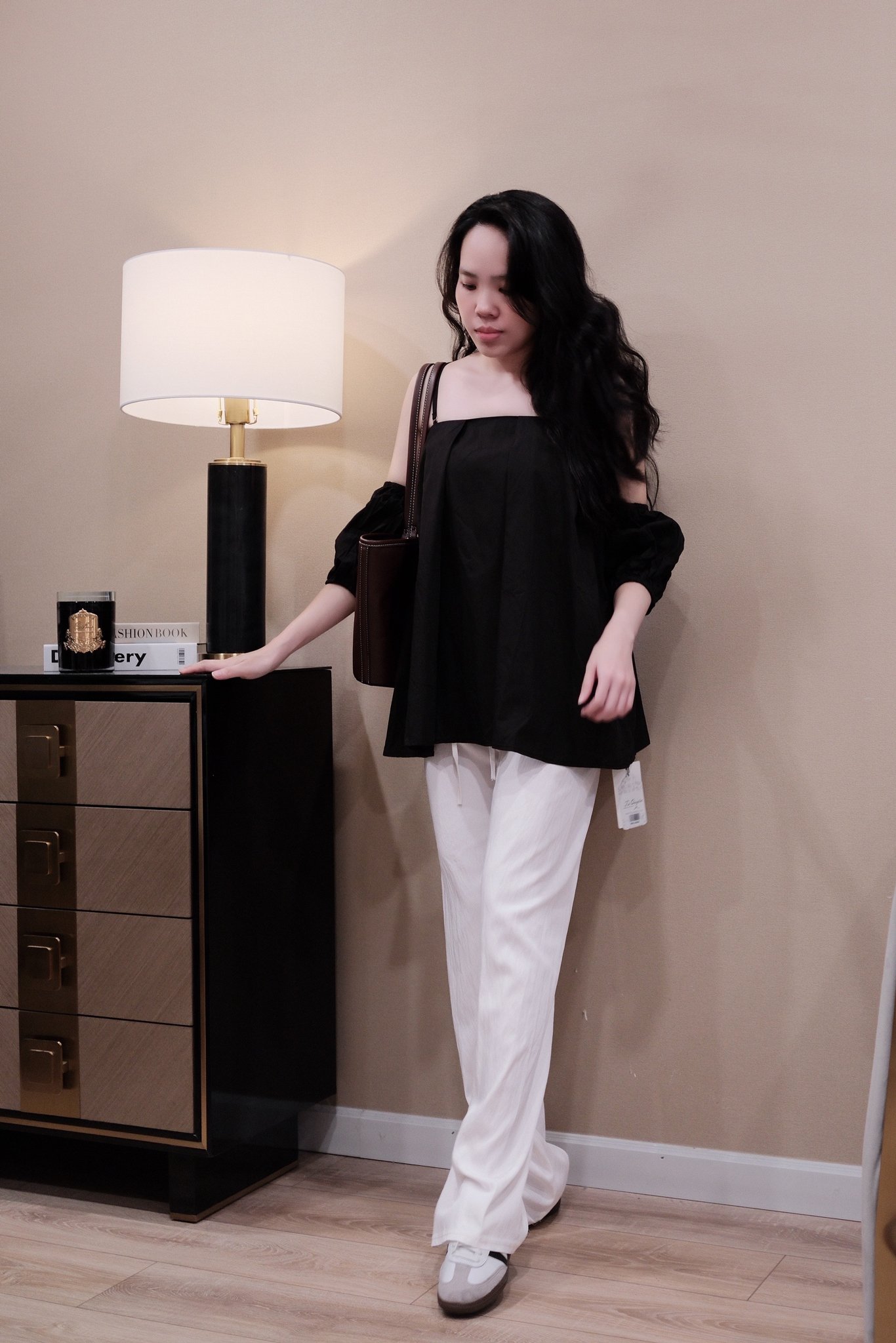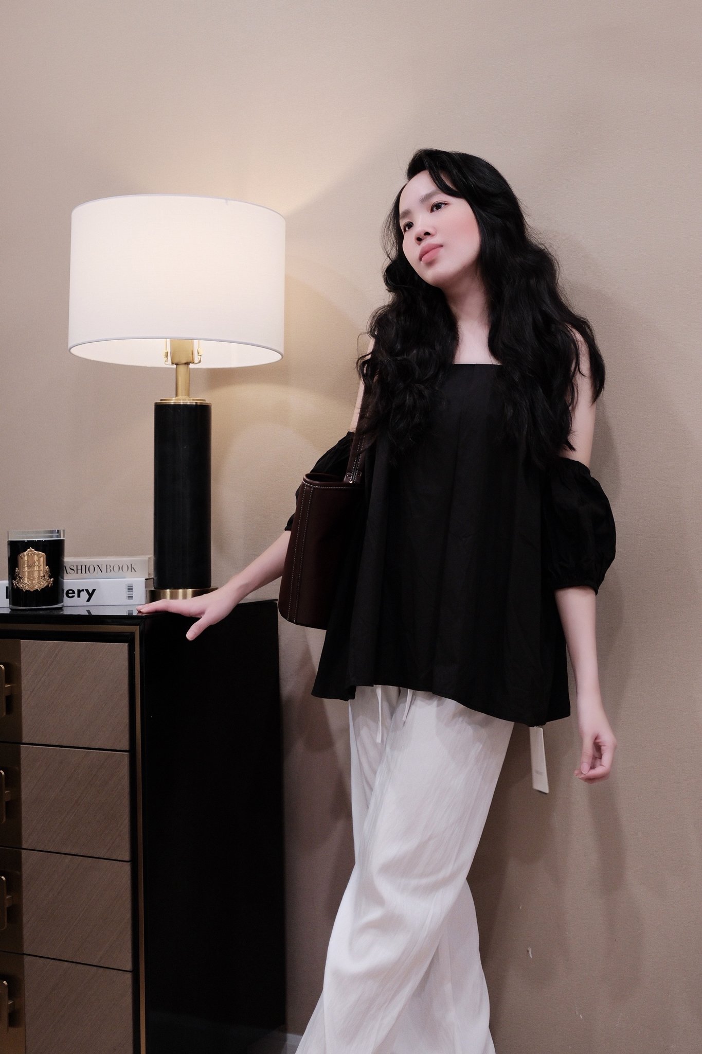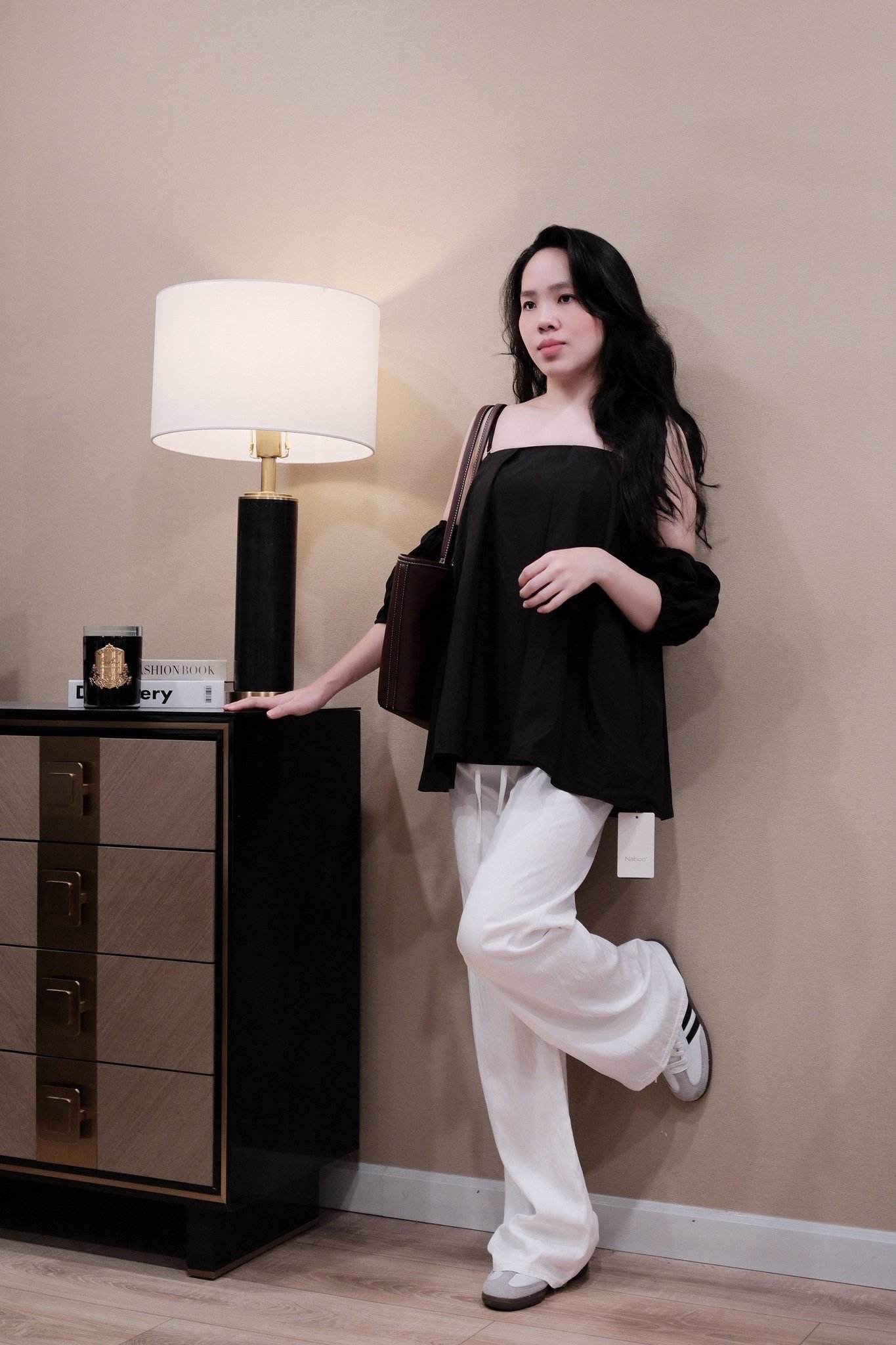 Quần suông dài lưng chun cột nơ: Quần suông dài giúp che khuyết điểm và tạo cảm giác chân dài hơn. Lưng chun co giãn và cột nơ vừa tạo sự thoải mái, vừa tăng thêm vẻ nữ tính.