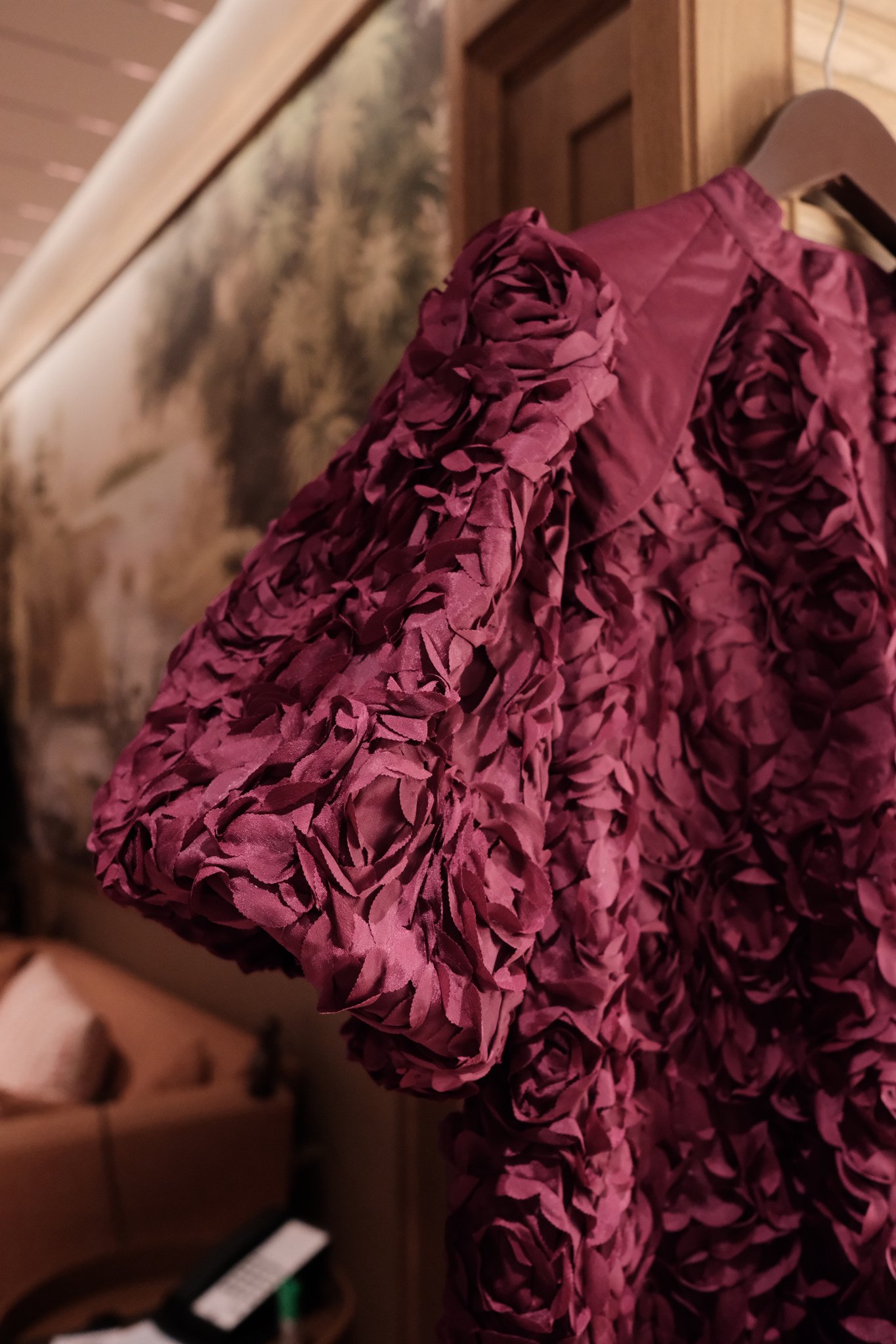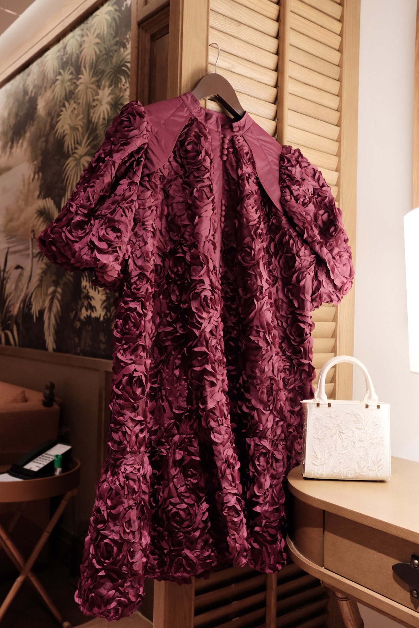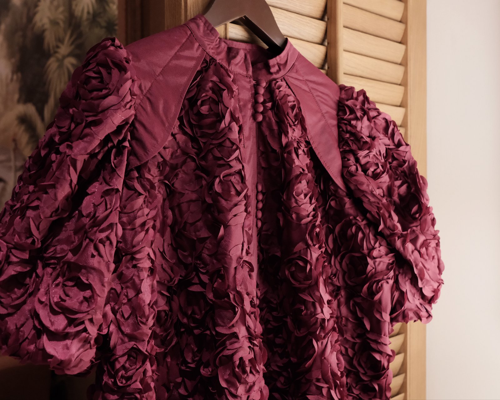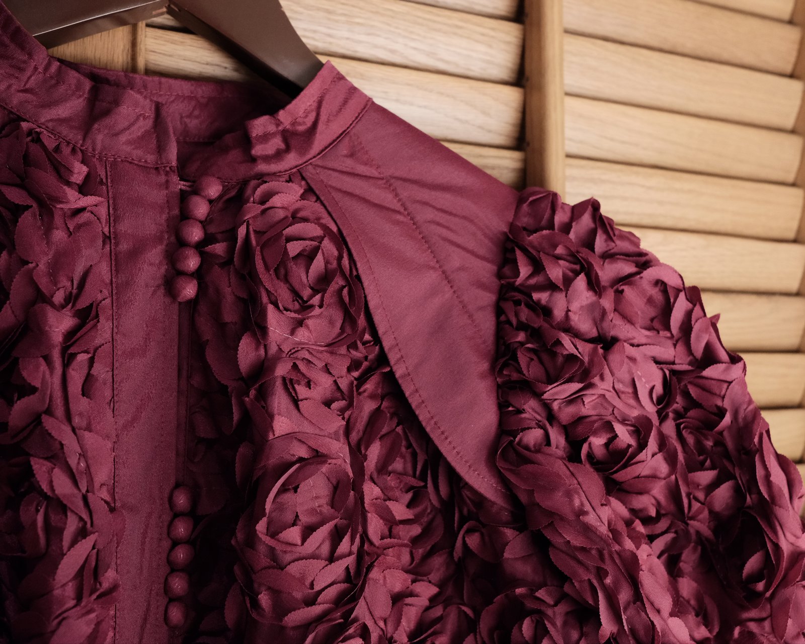 - Đứng Form và Giữ Dáng: Chất liệu thô có độ dày vừa phải, giúp váy giữ form rất tốt, đặc biệt là phần tay phồng và cấu trúc tổng thể, không dễ bị nhăn hay biến dạng.